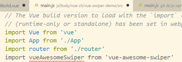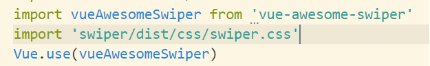 import VueAwesomeSwiper from 'vue-awesome-swiper' import 'swiper/dist/css/swiper.css' Vue.use(VueAwesomeSwiper)
