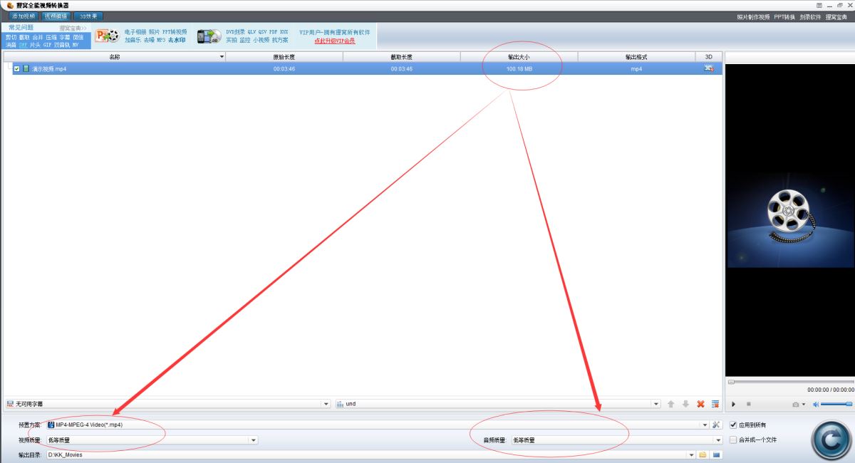 可别看这0.18M还真不容易调,自定义里的视频参数调一下变化太大,不到50M,这质量就有点对不起老板了;可是音频参数又基本没什么影响。