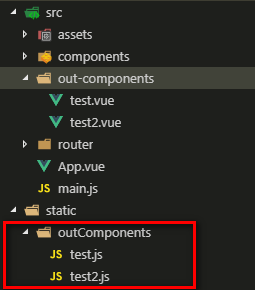 在static下outComponents文件夹内的js文件。(最终打包需要打包到dist下面,这边做测试先打包在static文件下,方便后续动态组件ajax获取组件使用)