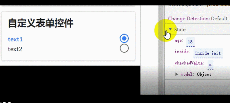这里checkedValue属性就是model value,view value 为PRadioComponent内部的某个属性(PRadioComponent中定义为this.value)。