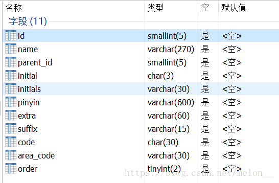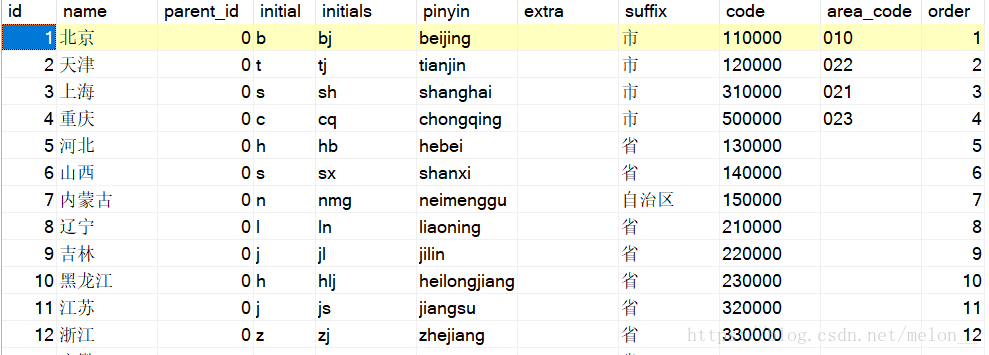parent_id:上级地区的id,若parent_id = 0 ,表示无上级信息,当前即为最高行政区。