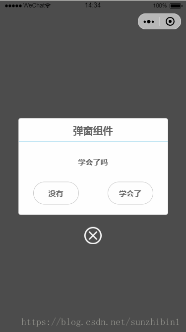 <popup id='popup' title='弹窗组件' content='学会了吗' btn_no='没有' btn_ok='学会了' binderror="_error" bindsuccess="_success" > </popup>