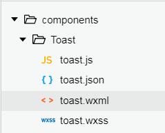 然后在components文件夹中创建Toast文件夹,在Toast上右击新建Component 之后就会自动创建相对应的wxml、wxss、js、json文件。