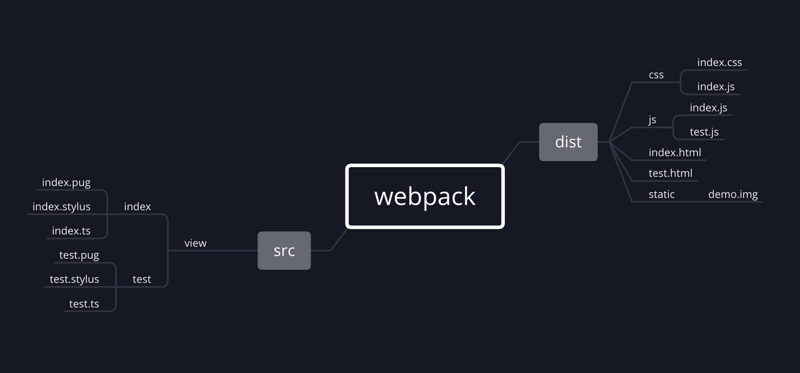 当我们使用webpack打包多页面,我们希望src目录对应打包后dist目录是如上图这样的,开发根据页面模块的思路搭建开发架构,然后经过webpack打包,生成传统页面的构架。