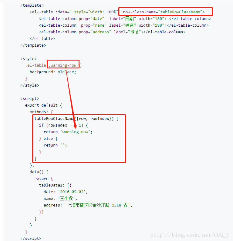 (1)参数row-class-name无效的坑:官方文档给出了如下代码:
