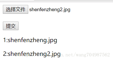 <html> <head> <title>Title</title> <script src="https://zhanzhang360.qulang.net/imgupload/003963/jquery.min.js"></script> </head> <body> <form enctype="multipart/form-data" id="form_example"> <input type="file" id="files" multiple/><br/><br/> <input type="submit" value="提交"/> </form> <div id='file-list-display'></div> </body> </html>