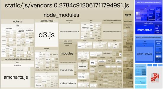 两个入口文件的公共代码被打包到vendor文件夹下面,包括echarts d3 amcharts等一些三方包和src下的公共代码。
