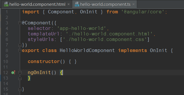 打开hello-world.component.ts这里边自动创建的都在前面添加了app这个字样。
