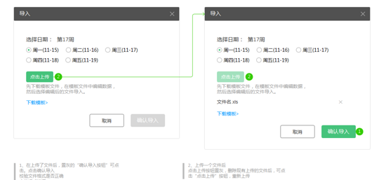 在用户使用过程中提出一键导入的功能,需求如下:点击导入按钮显示提示框,然后是单选框以及上传按钮。pc端常使用element-ui组件,但是这个项目是vue1的老项目,并且没有element-ui组件。所以需要自己动手实现单选功能和上传功能。