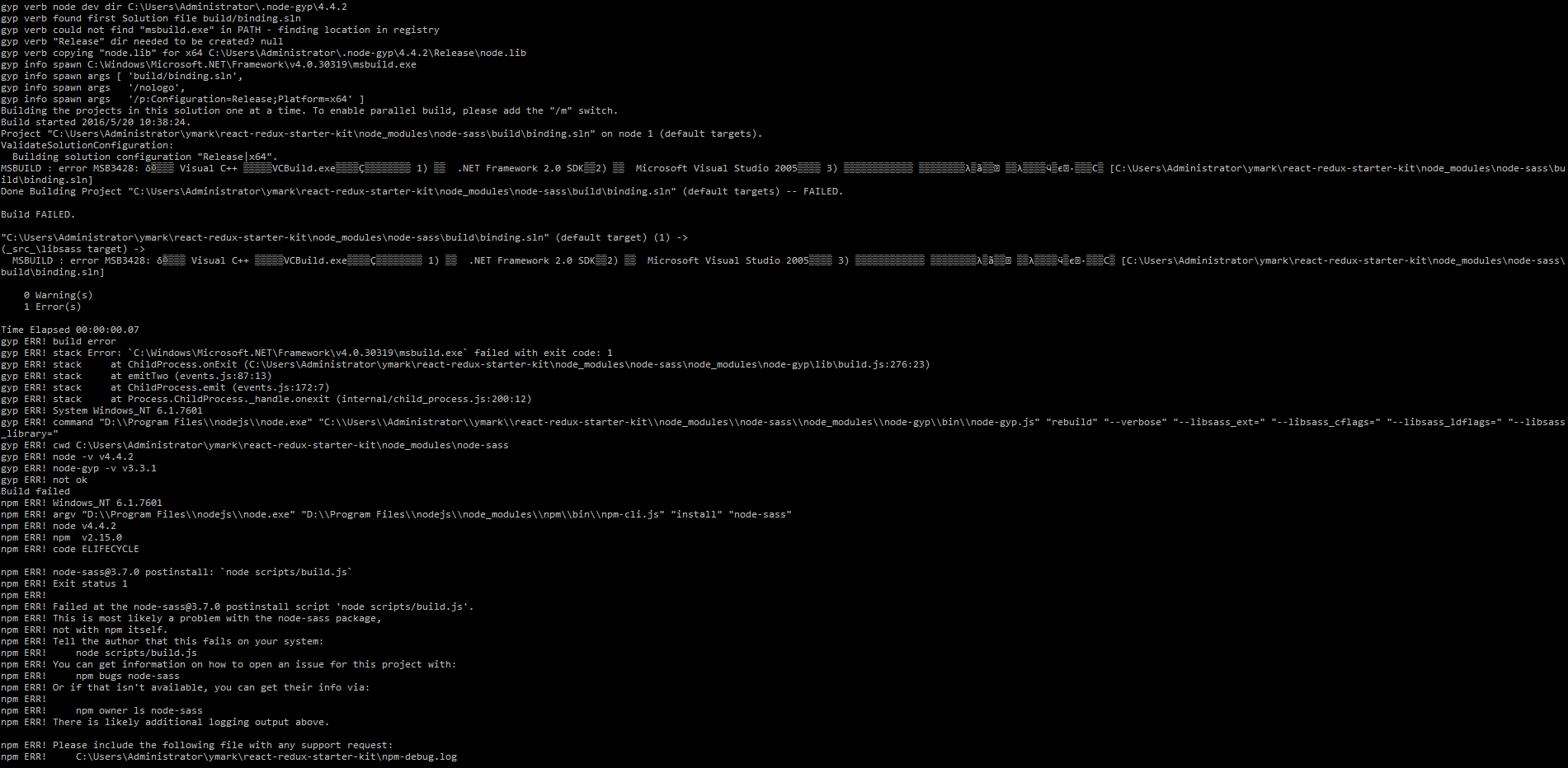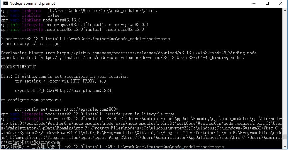 使用npm install node-sass时,遇到的错误: