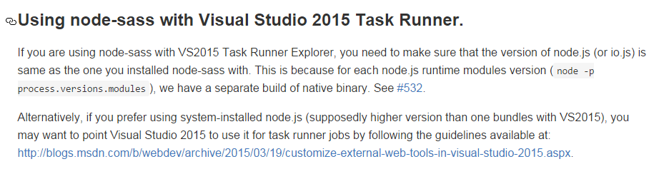 Using node-sass with Visual Studio 2015 Task Runner