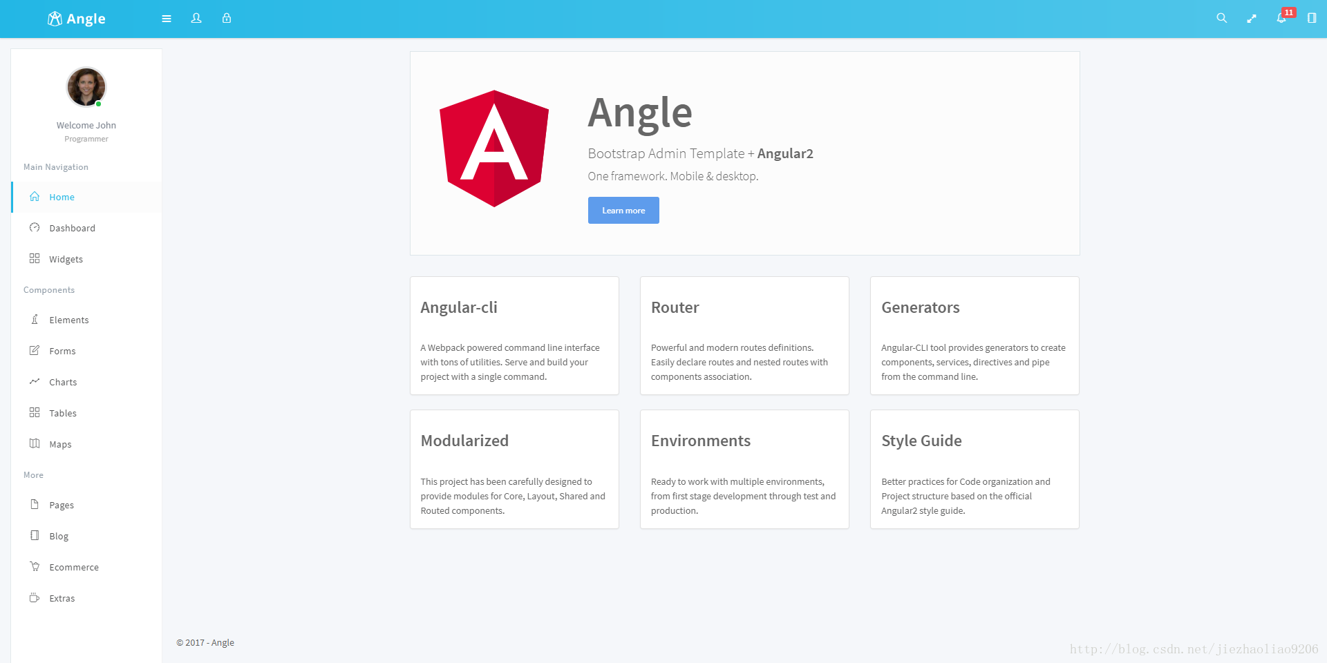 本人是一个java web开发工程师,对angularjs4小有接触,最近看到一个漂亮的angularjs4的后台模板–angle,于是就在CSDN下载来测试一下,点击这里下载