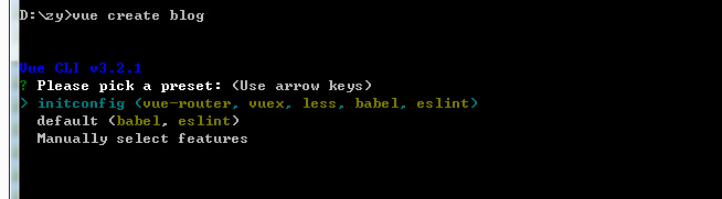 3.选择项目配置就可以下载@vue/cli,创建新项目了,这里选择之前保存的