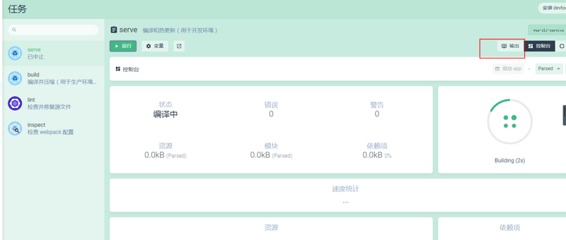 4.任务=>serve 点击运行就可以相当于启动项目了 npm run serve 了, 可以点击输出查看控制台结果