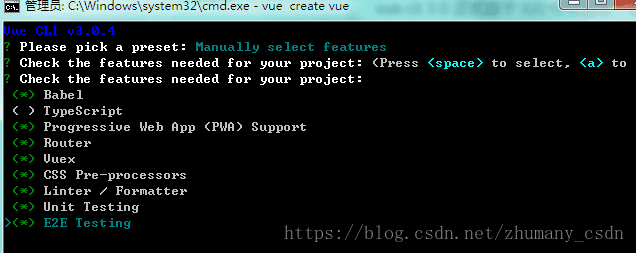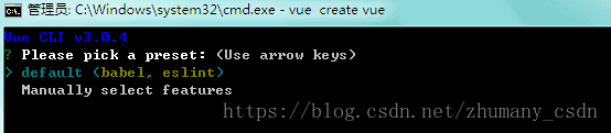 a 、 指令: vue create < project-name> ;然后会出现默认和手动两个选项,跟着步骤走就好;下面选择手动