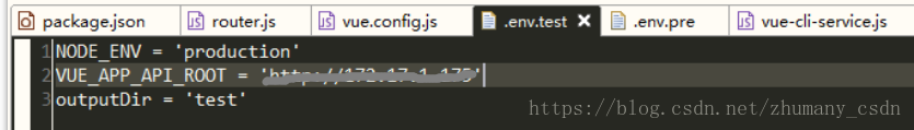 如果你还想在同一项目打不同的生产包,也只需在.env文件里面加上相应的配置,但是与vue-cli 2.0 比较,你需要建多个.env文件,来控制的包 eg: