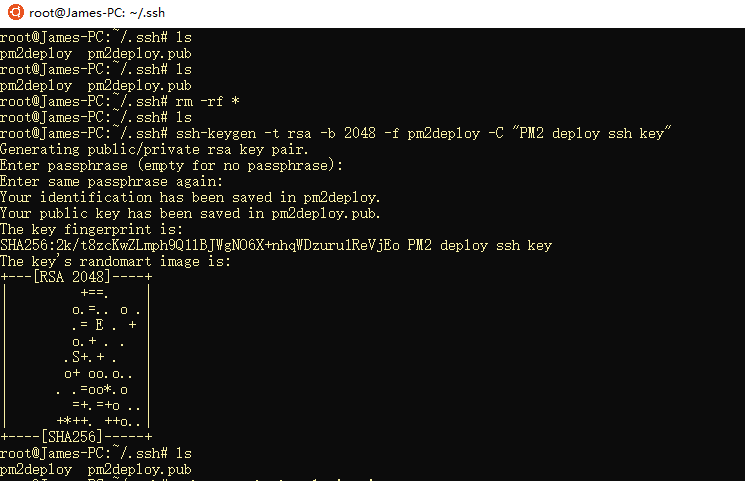 执行 ssh-keygen -t rsa -b 2048 -f pm2deploy -C "PM2 deploy ssh key"