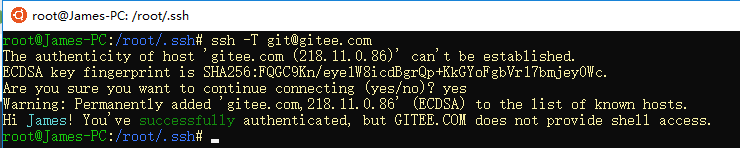 添加成功以后,本地shell执行git -T git@gitee.com