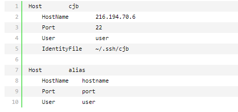 如果有多个 ssh 账号需要配置,在 config 文件里隔行分开写就行