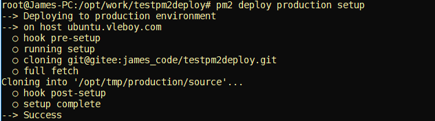 配置完成后,执行 pm2 deploy production setup 初始化PM2的部署