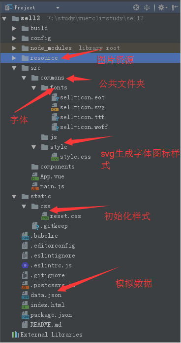 8、将需要的资源放进项目
