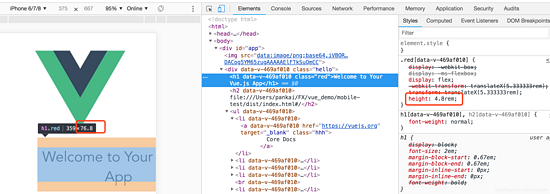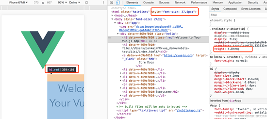 比如一个img的宽,高,在iphone6上的尺寸(审查元素的大小!px单位):