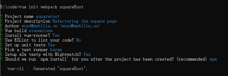 生成webpack脚手架,在我们按下回车的时候,会出现一些提示问题,对应关系如下: