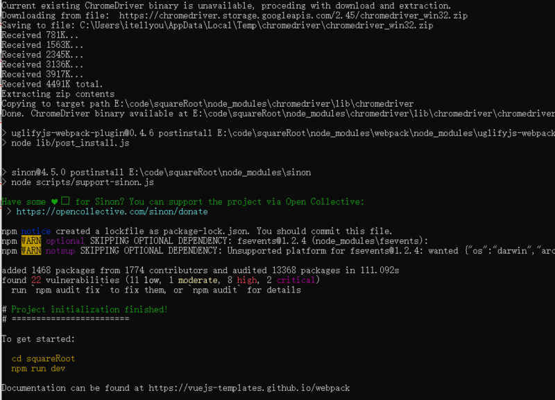 初始化项目,安装package.json 文件中描述的依赖,初始化完成后,我们可以通过