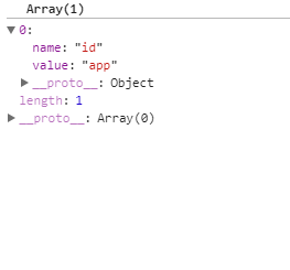当时attrs是上面图这样子滴 我们通过这个循环把它转化为只带name 和 value这2个属性的对象 如图: