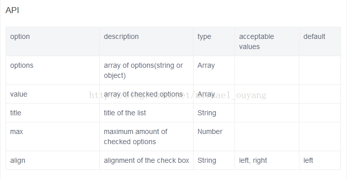 <mt-checklist :title="多选标题" v-model="value" :options="item.options" @change="checkon($event)"></mt-checklist>