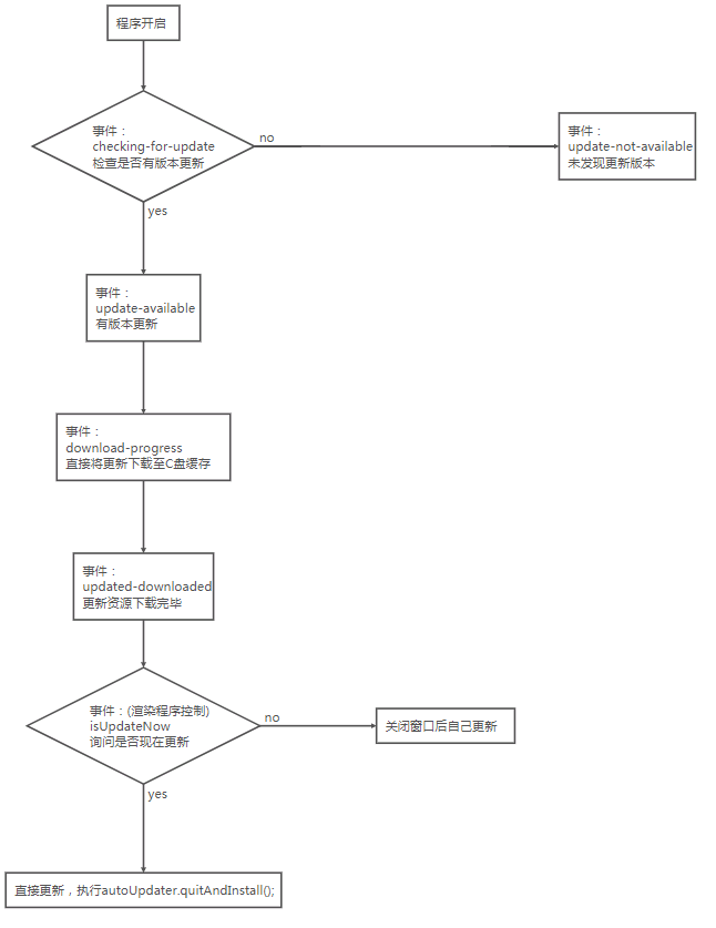 结果发现原来主进程与渲染进程之间通信必须在渲染进程已经运行的时候(即那个界面完全显示出来)才能够进行。所以我将自动更新改为界面按钮触发,这样才能检测到自动更新的整个流程。