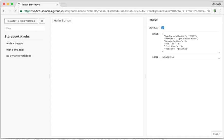 knobs插件提供一个表单控制台,用户可以通过表单控制台来改变组件相关属性,展示不同属性下的组件