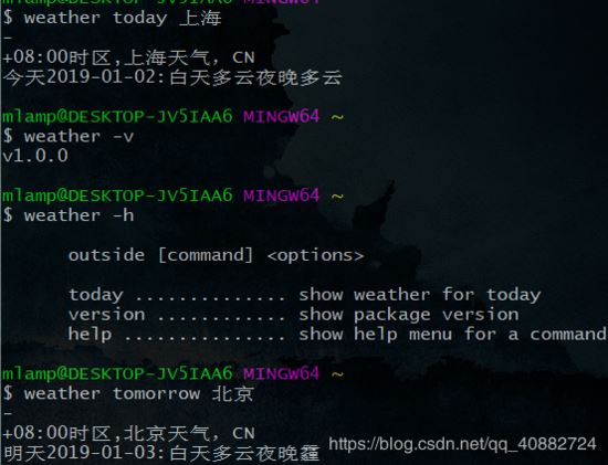 发布至npm仓库之后 可以直接以npm i -g weather全局方式安装我们发布的cli,并在任何地方输入weather命令查询天气了哟!