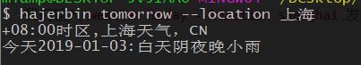 例如查询上海今天的天气: weather today --location shanghai