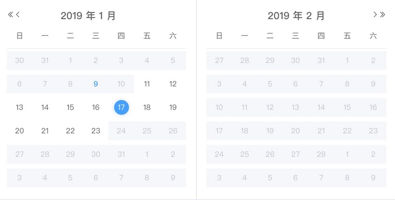选择日期范围,但是选择范围需要在一周以内。举个栗子:假设选第一个日期为1月17日,那么1月11日以前、1月23号以后的日期都需要设为禁选状态。