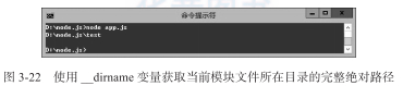 在命令行窗口中输入“node app.js”命令并按下回车键,REPL运行环境中将显示testModule.js文件所在目录的完整绝对路径,执行结果如图
