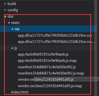 观察目录结构,发现多了一个dist文件夹,这便是webpack打包后的文件,将改文件和后台商量,以什么形式放到服务器即可,上线成功。