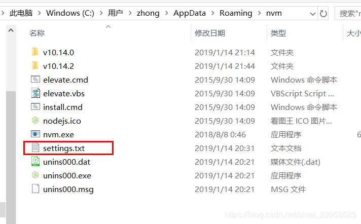 打开nvm的安装路径,默认安装路径是:C:\Users\zhong\AppData\Roaming\nvm