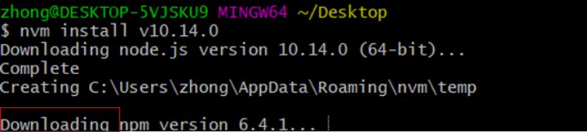 Downloading 代表正在下载npm,一定要等下载完,不然会发现npm将无法使用。
