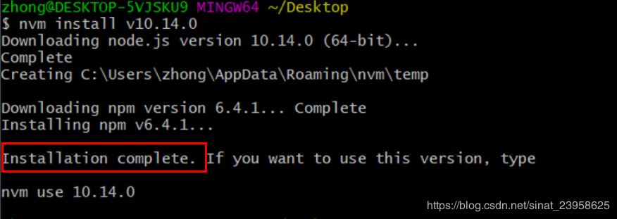 Installation complete 代表nodejs安装完成