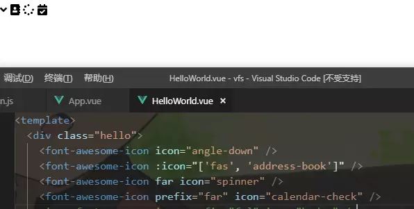 当然并非一定要写成font-awesome-icon标签,它只是组件与main.js里面的Vue.component对照,main.js的Vue.component只是将其作为全局组件。在:icon="['样式','省去样式前缀的图表名']",
