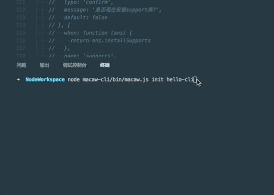 接着,在 bin 目录下创建 macaw-hello.js ,放一个打印语句