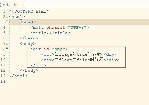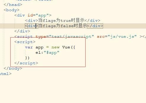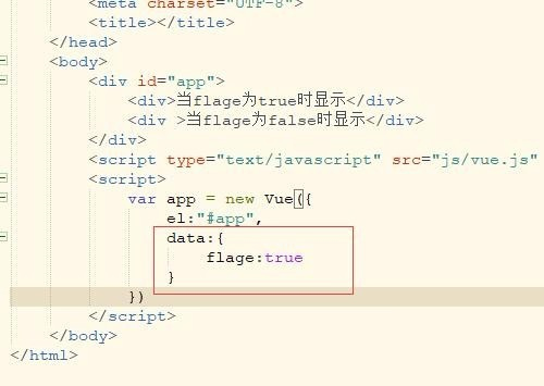 <div id="app"> <div>当flage为true时显示</div> <div>当flage为false时显示</div> </div>