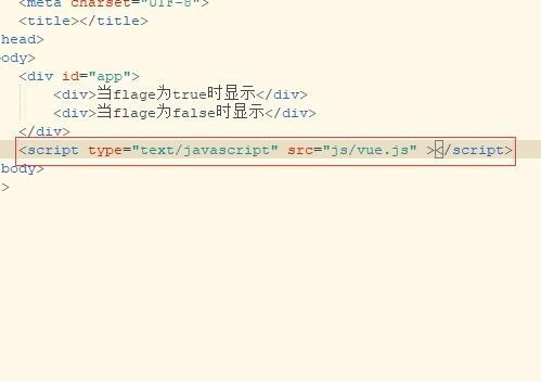 2、引入vue.js。在body结束标签前面使用引入vue.js文件。