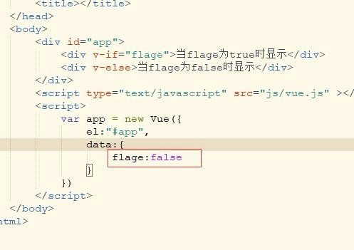 6、回到html代码页面,把flage修改为false,保存后刷新页面,会看到显示的内容为v-else的。