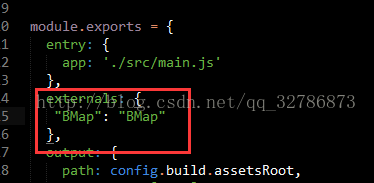 (2)在webpack.base.conf.js文件内添加external选项,在module.exports内部,和entry平级;