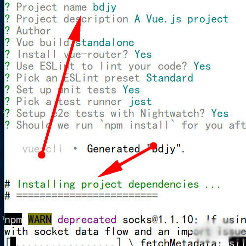 3、接着便是一路回车来确认项目所用到的一些语法和测试包即可。