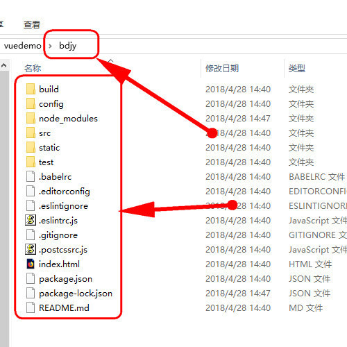 5、接着看看bdjy这个目录里面就有了vue项目结构的一些依赖包了哦。