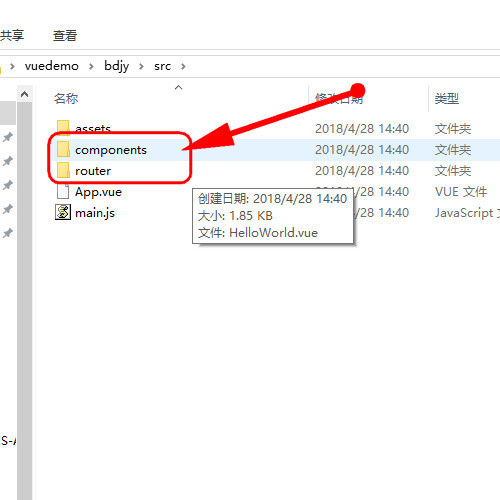 6、这个components就是存放vue组件的哦。而这个route则是设置vue路由的文件夹啦哦。