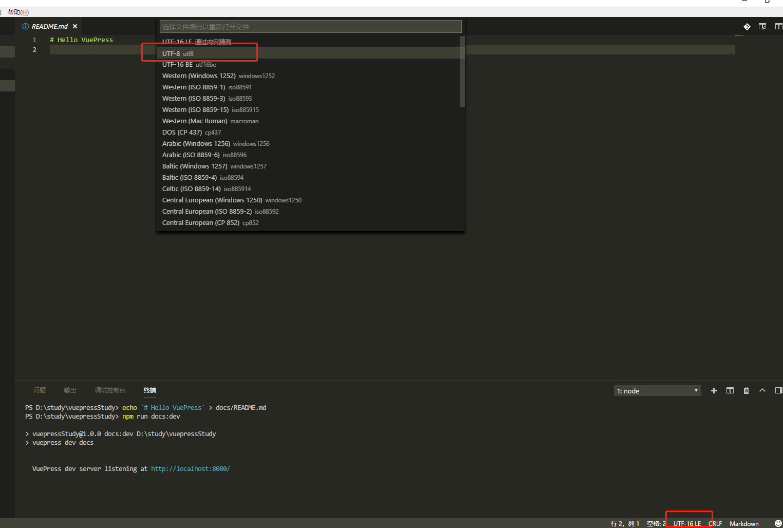 解决方式:修改md文件编码为UTF-8